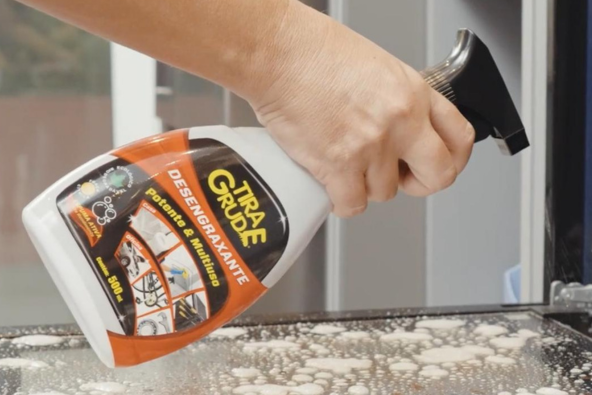 E aí, já pensou em garantir o seu Tira Grude Desengraxante? O produto está disponível em frasco borrifador de 500mL com gatilho dupla função (stream e spray), que facilita a aplicação e aumenta o rendimento.